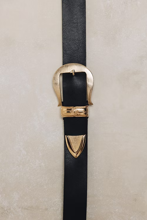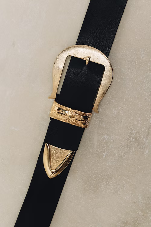 - Χειροποίητη δερμάτινη ζώνη με χρυσά μεταλλικά στοιχεία