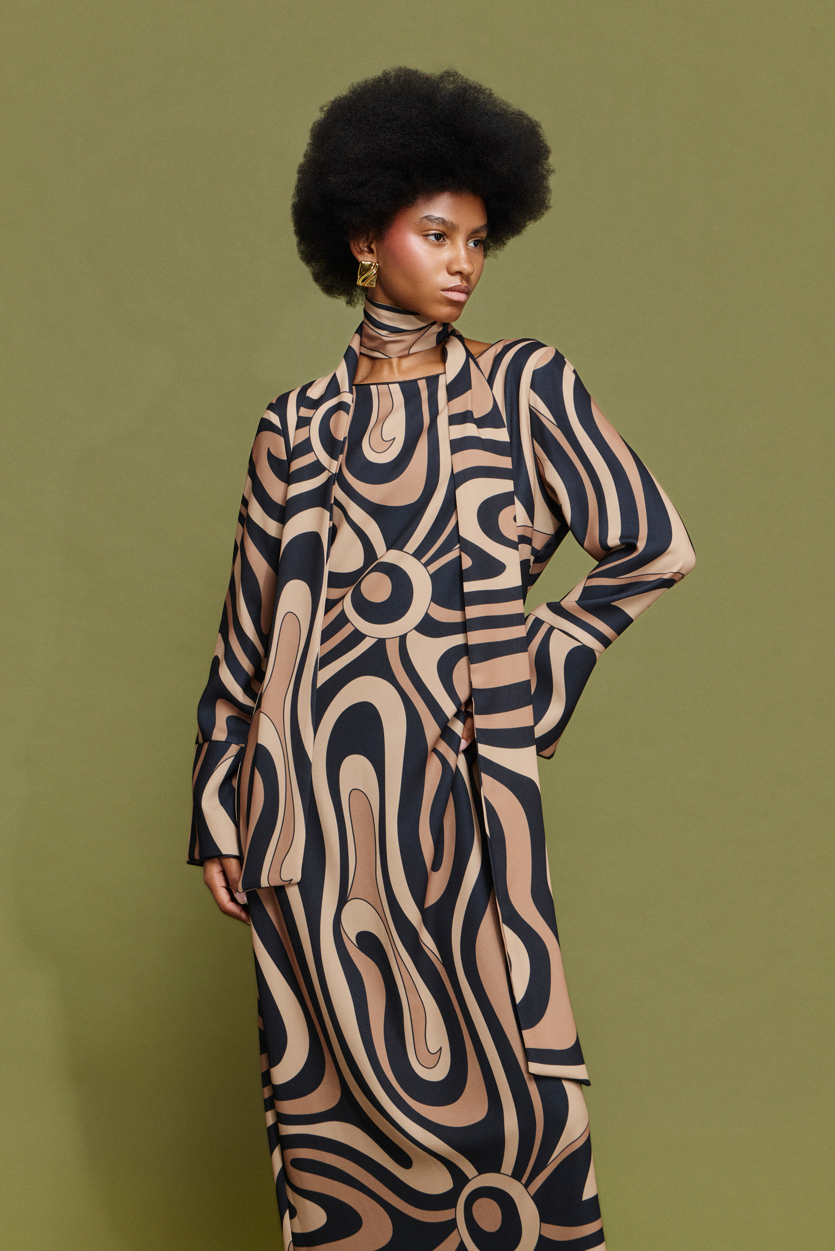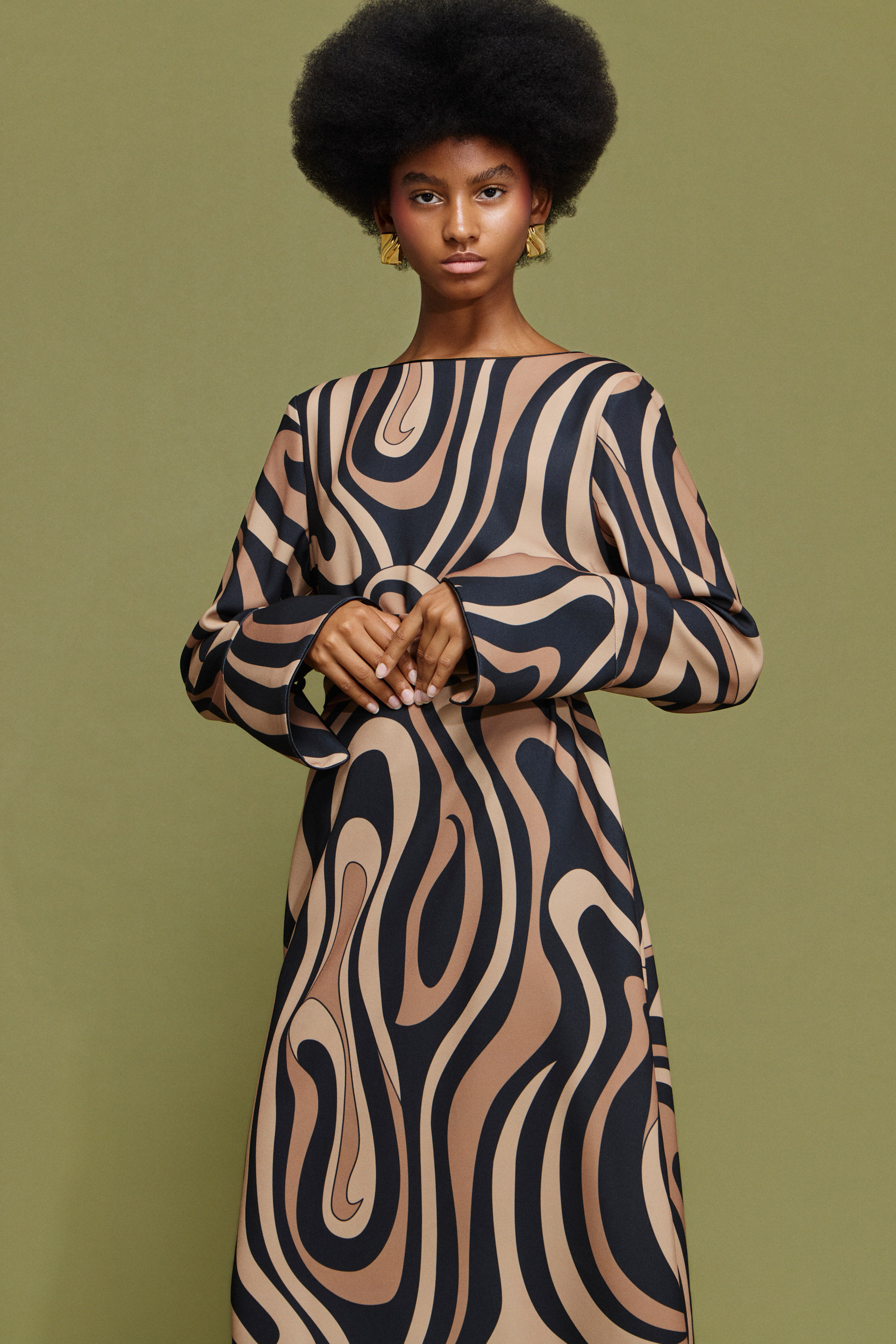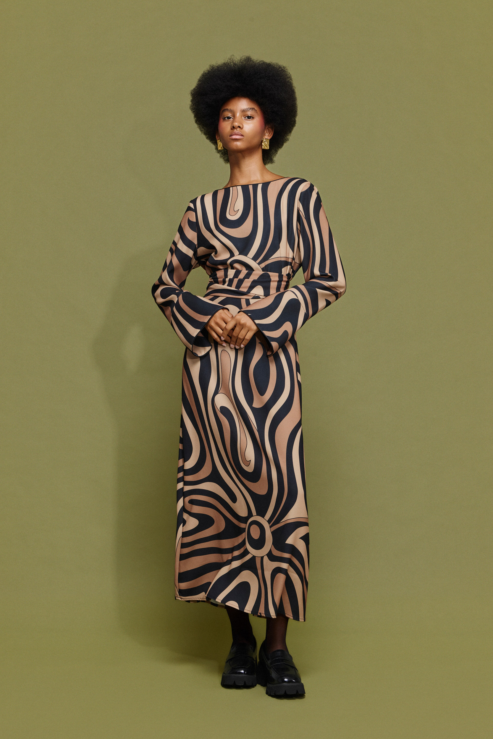 - Μίντι εμπριμέ φόρεμα σε εφαρμοστή γραμμή