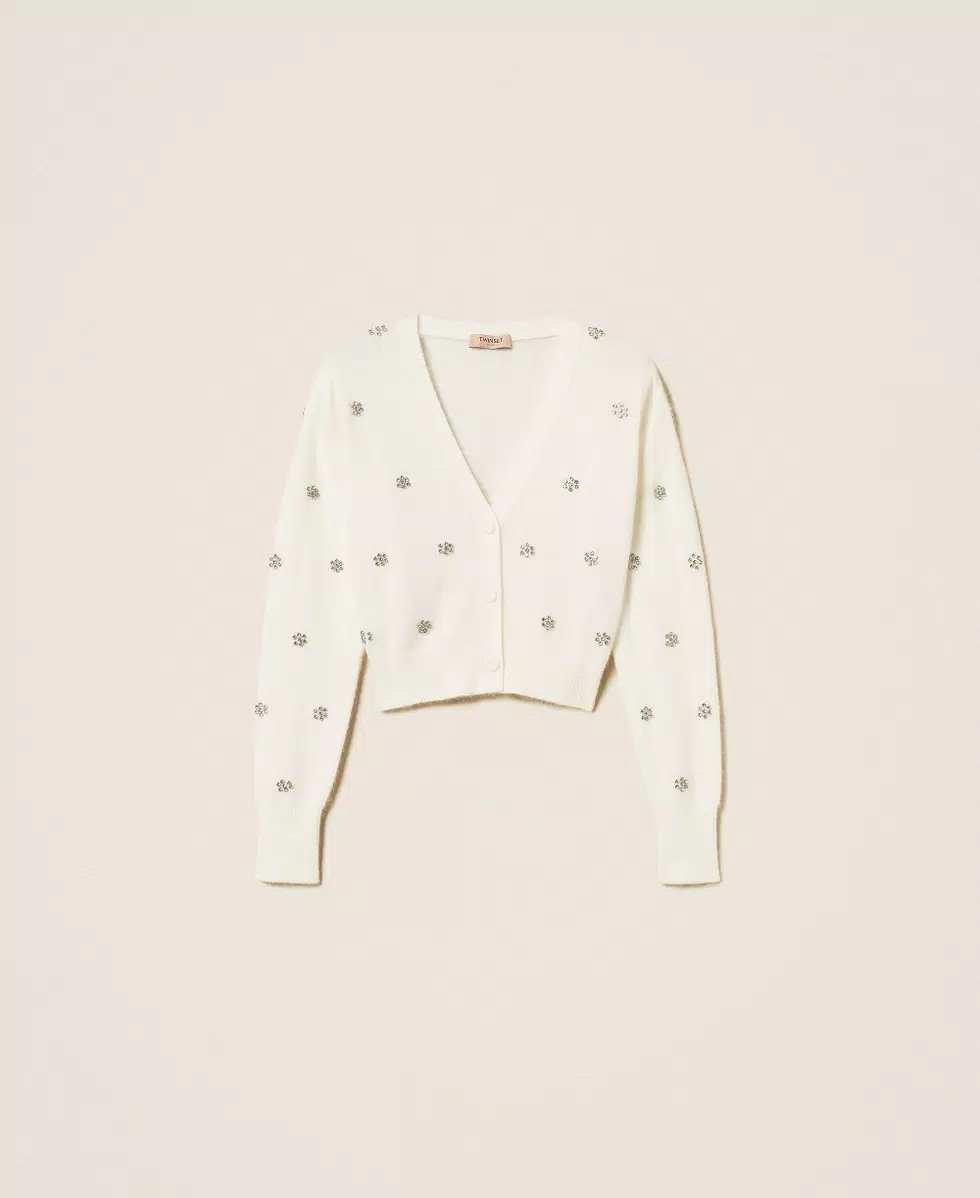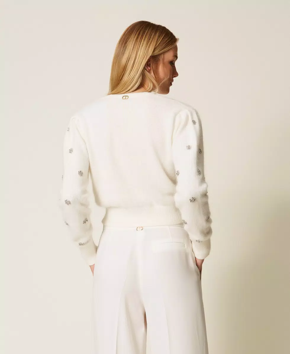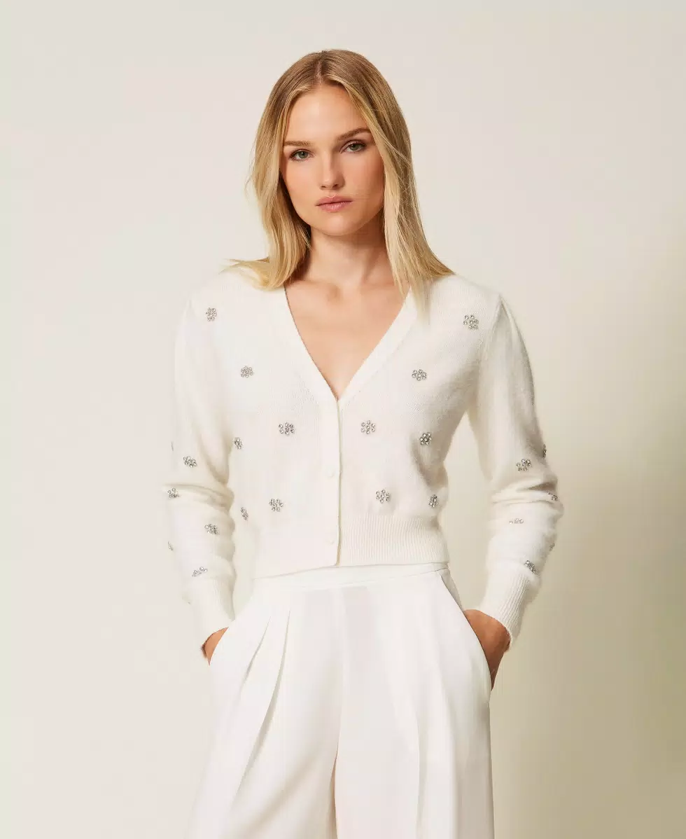 - Απαλή ύφανση και απλικέ με στρας που σχηματίζουν λουλούδια