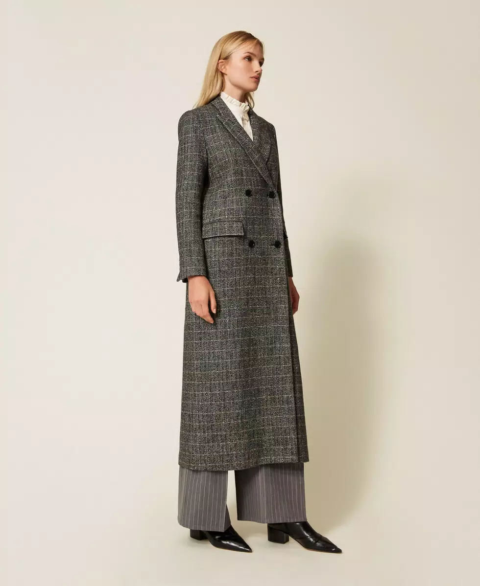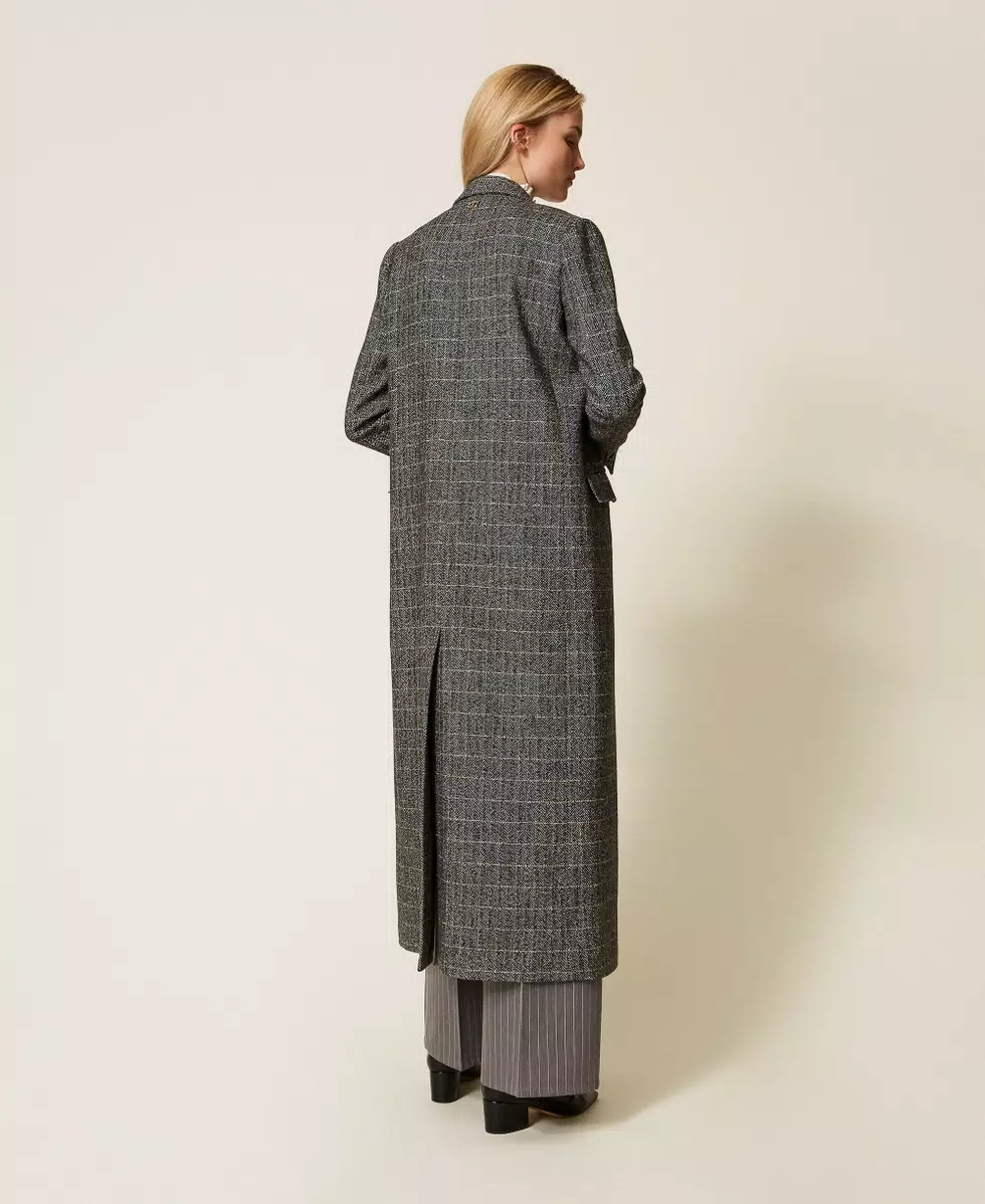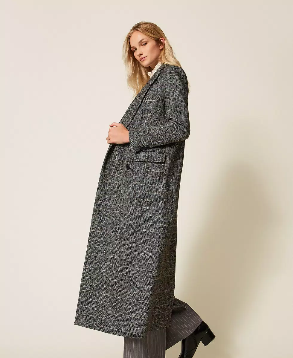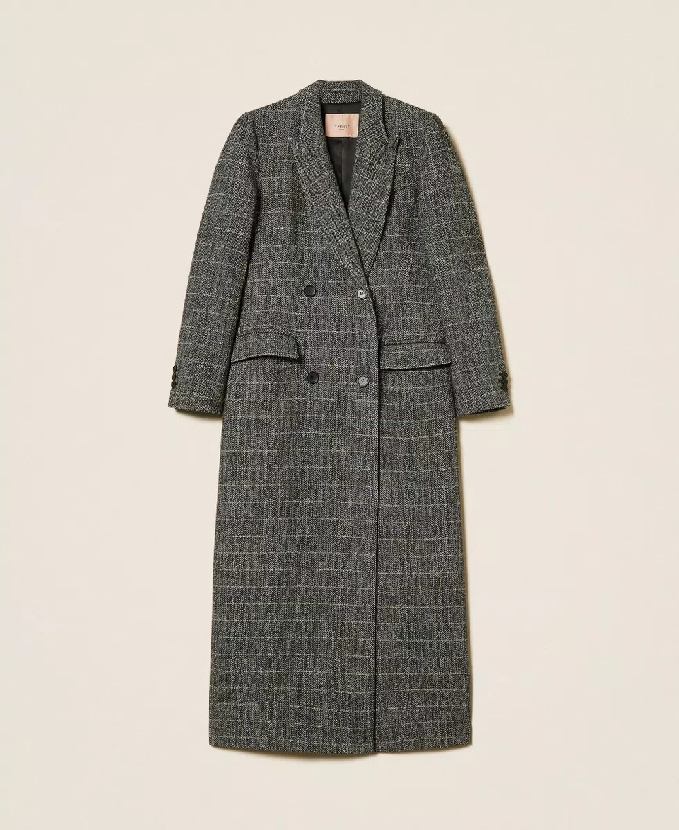 • Μακρύ παλτό από μείγμα μαλλιού με σχέδιο chevron και lurex