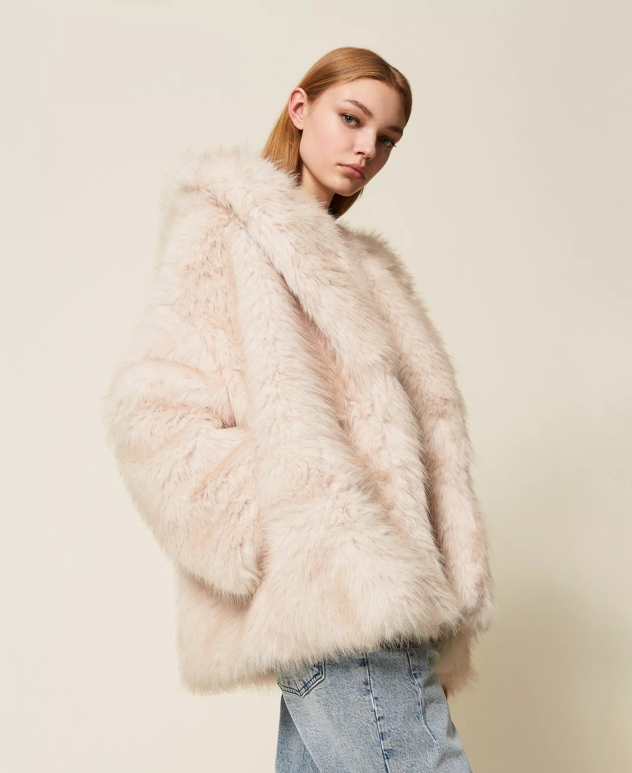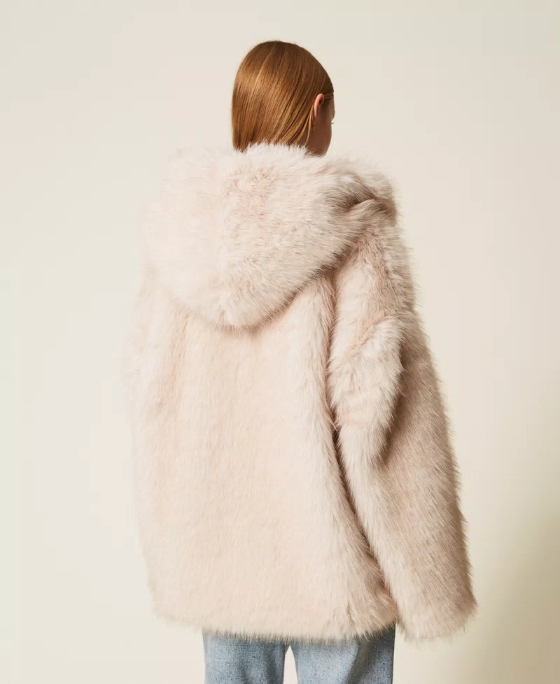 - Παλτό από ψεύτικη γούνα με φαρδιά κουκούλα