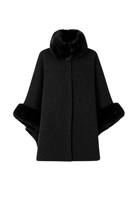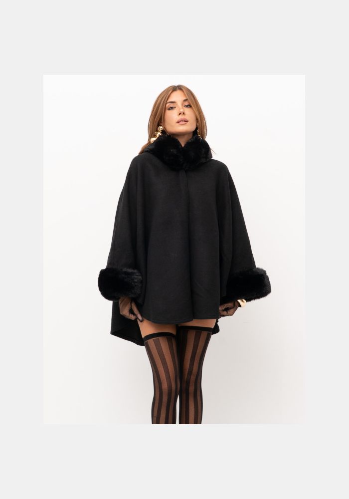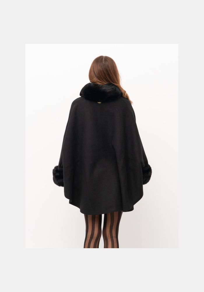 • Πόντσο από ύφασμα με γιακά και μανσέτες από τεχνητή γούνα